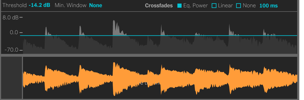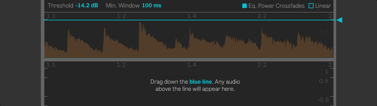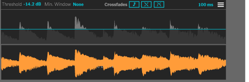 - Threshold: Sets the dB level below which audio is considered silent. The device intelligently suggests an initial threshold based on the audio's dynamics.
